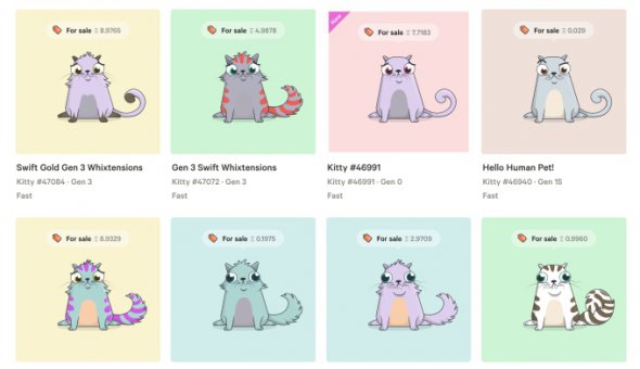Менше ніж за тиждень після запуску гри "криптокотенята" додаток став найпопулярнішим у блокчейні Ethereum.