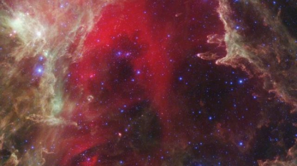 Це регіон зореутворення американські вчені W5. Сині точки, розкидані в центрах двох порожнистих областей, є старими зірками. Рожеві точки, що знаходяться по периметру цих областей, - молоді. Багато блогерів зізналися, що таке чарівне зображення їх зачарувало.
