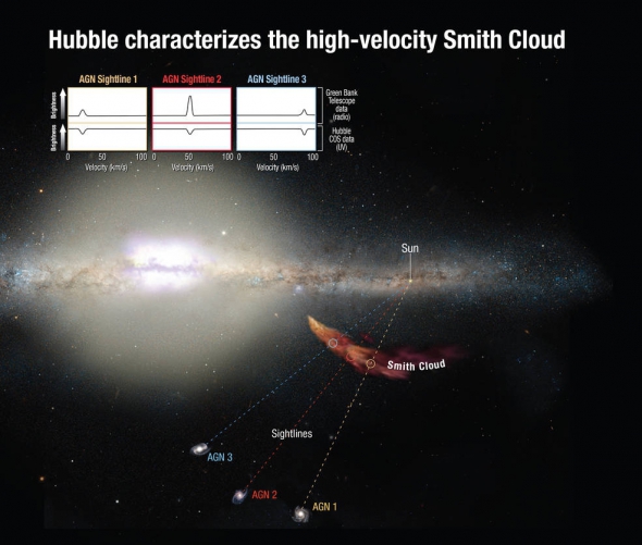 Раніше астрономи вважали, що "Хмара Сміт" - це беззіркова галактика. Гіпотезу спростували за допомогою даних телескопа Hubble. Вчені визначили не тільки місце появи хмари, але і її склад. Виявилося, що сірки в ній приблизно стільки ж, скільки у зовнішньому диску Чумацького Шляху. Це говорить про те, що хмара викинута саме з нашої галактики.