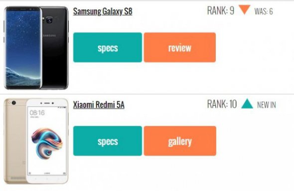 На останньому місці опинився найпродаваніший смартфон Xiaomi - Redmi Note 5A.