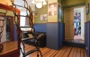 Спальна кімната оформлена у фіолетовій гамі. Стіну біля ліжка прикрашає рельєфний візерунок пейслі. Контури "огірків" були видавлені по сирій штукатурці, а потім вручну заповнені фарбою.
