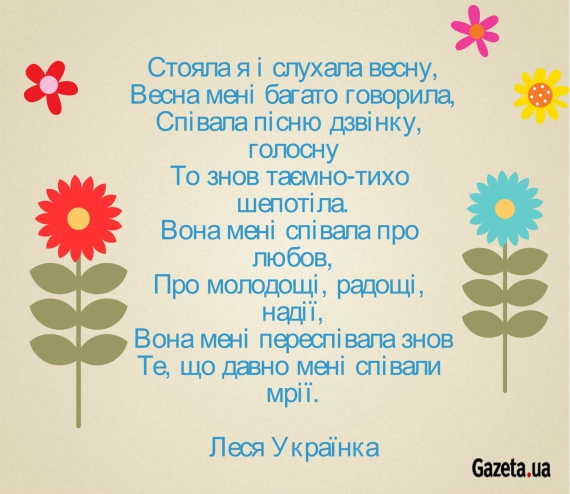 Зараз ви читаєте новину «ТОП-5 віршів про весну, які популярні у соцмережах». Вас також можуть зацікавити свіжі новини України та світу на Gazeta.ua