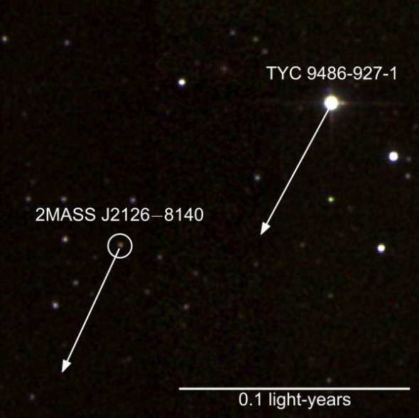 Приблизно п'ять років тому американські астрономи відкрили коричневий карлик 2MASS J2126−8140, розташований у сузір'ї Октанта на невизначеній відстані від Землі. У 2014 році інша група вчених виявила, що він входить до сусіднього з нами скупчення зірок, яке розтяглося між сузір'ями Тукана і Годинника, віддалене від нас усього на 104 світлових роки.