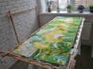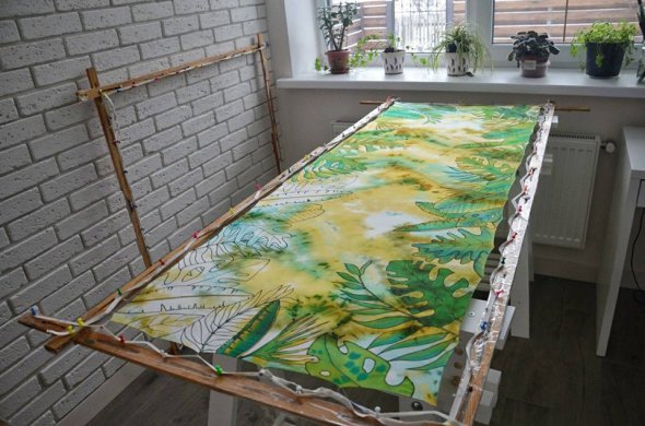 "Є техніка вузликового батіку. Коли згортається тканина та наноситься спеціальна фарба. Треба мінімум два дні для виготовлення хустини у такому стилі. Можна зробити виріб у техніці холодного бтатіку. Але потрібна спеціальна рама з крючками. За допомогою трубочки з резервом малюю лінії, що не дають розтікатись фарбі. Такі контури можуть бути прозорими, чорними, золотими чи срібними, - розповідає Світлана, - Можна розписати шовк у техніці гарячого батіку. Там використовують віск та малюнок виходить багатошаровий. Кожен прошарок – окремий колір. На одному виробу може бути близько 5 шарів. Починати варто від світлого до темних кольорів. Можна використовувати й декілька технік одразу".