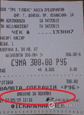 "Ось такий касовий чек видають у Донецькій телерадіокомпанії "Глобус". Нижня частина українською, а апофеозом всього є "Дякуємо за покупку". Це при тому, що у ДНР постійно трублять про незалежність від України, віру в свої цінності, мову, культуру і "русский мир".