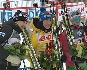 Перемогла німкеня Магдалена Нойнер, випередивши фінку Кайсу Макарайнен на 12,3 секунди і білоруску Дарину Домрачева на 17. Нойнер і Макарайнен пробігли по одному штрафному колу, Домрачева - два.