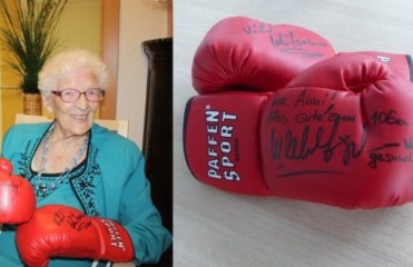 Шанувальниці на ім'я Анна, якій виповнилося 106 років, брати подарували боксерські рукавички зі своїми автографами.