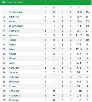 7-й тур. Рома - Наполі. Палермо - Ювентус. Інтер - Удінезе. Фіорентіна - Лаціо. Кальярі - К"єво. Болонья - Дженоа. Барі - Катання. Аталанта - Мілан. Сампдорія - Парма. Сієна - Ліворно.