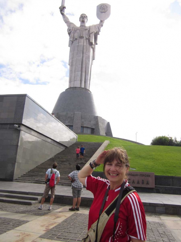 "А що це у вас таке? Нагадує мені Нью-Йорк. Музей Великої вітчизняної війни? О, ходімо туди! Мої батьки були італійськими комуністами. Після війни емігрували до Канади. Батько в 30 років мав трьох дітей на руках, потім народилися ще 6-ро. Багато мені розповідали про ту війну. - Жінка ретельно фотографує кожен танк і літак. У цей час пара інших футбольних фанів у футболках збірної Італії фотографуються на фоні групового барельєфу солдат. - Я не люблю фотографуватися на фоні таких речей. Навіщо мені моя усміхнена фізіономія на фоні таких страждань? Моя мама би плакала. Я знаю, що кажу. Перекладіть мені, про що ця стара пісня з динаміків".