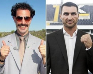 Британський боксер-важковаговик Девід Хей порівняв українця Володимира Кличка з казахським журналістом Боратом Сагдієвим - персонажем коміка Саші Барона Коена. За словами Хея, Кличко, який народився в Казахстані, говорить англійською з таким же акцентом, як Борат.