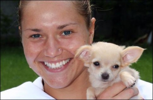 "Собаку породи чіхуахуа Катя купила на Ролан Гарросі і возить тепер Принцесу скрізь з собою, - розповіла мама тенісисток Наталія Володимирівна. - В Олени теж є собачка - йоркширський тер"єр Емілі. Олена також його возить на змагання, але зараз тер"єр трохи захворів і залишився вдома. Та і взагалі, у дочок з дитинства любов до тварин. Удома ще три собаки живуть, а також рибки, хом"як, морська свинка, шиншила, дві папуги і два кролики... У нас великий зимовий сад, так що всім місця вистачає".