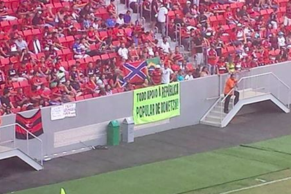 Плакат з написом "Повна підтримка Донецької народній республіці" був вивішений на трибуні національного стадіону імені Мане Гаррінчі в Бразиліа, де проходив матч між "Фламенго" і "Шахтарем". Крім того, на секторі бразильських фанатів з'явився прапор Новоросії.