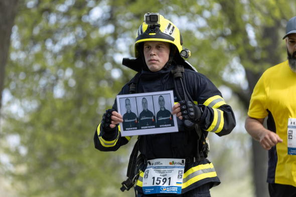 Андрій Гречаний не вперше присвячує забіги полеглим колегам. У квітні в Києві він біг у повній амуніції в пам'ять про трьох рятувальників із Харкова, які загинули розбираючи завали у місті - теж під час повторної атаки ворога.