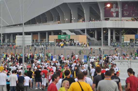 Біля стадіону "Арена Львів" активно торгують квитками. Їх продають іноземні фанати та українські. Іноземні фанати віддають квитки за собівартістю, деколи роблять знижки на 5-10 євро. Українці ж роблять націнку 200-300 гривень. Квитки, які коштують 70 – 120 євро продають за 100-150 відповідно. Лише до початку матчу українці теж почали знижувати ціни на квитки.