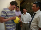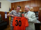 Кортеж з міліцейських машин благополучно супроводжував Андрія П"ятова, трофей і його охорону до першого пункту призначення - кіровоградської облдержадміністрації. Андрій нагородив губернатора Кіровоградської області Василя Моцика жовтим воротарським светром і м"ячем зі своїм підписом, за що взамін отримав книгу про історію кіровоградського краю і видатних людей цього регіону. До речі, в цьому виданні Андрію П"ятову відведено місце на 591-ій сторінці.