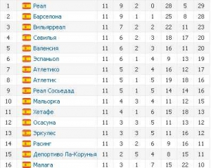 "Реал" на очко випереджає "Барсу" і на шість - "Вільяреал", який йде третім.