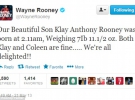 Нападник "Манчестер Юнайтед" Вейн Руні сьогодні став батьком вдруге. Дружина футболіста Колін народила хлопчика, якому батьки дали ім'я Клей Ентоні.
