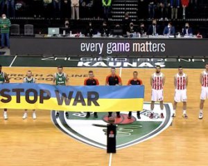 Баскетболісти литовського клубу та судді розгорнули його, а от гості із Сербії відмовилися взяти до рук цей банер.
