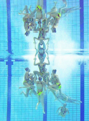 Українські синхроністки Лоліта Ананасова, Олена Гречихина, Дарина Юшко, Ганна Хмельницька, Ганна Клименко, Ольга Кондрашова, Олександра Сабада, Катерина Садурская, Ксенія Сидоренко та Ганна Волошина стали срібними призерами, набравши 93,42 бала і поступившись іспанкам 2,18 бала. "Бронзу" взяли італійки (90,44).