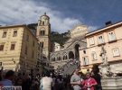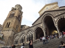 Паркуємось на площі, де стоїть пам'ятник амальфійському капітану Флавіо Джойя. Він нібито першим винайшов магнітний компас 700 років тому. Прямуємо до собору. На площі перед ним натовпи туристів. Стоїть фонтан, в центрі якого статуя Апостола. Його обсіли туристи. До входу в собор ведуть 57 сходинок, на них усі фотографуються.