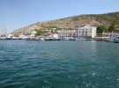 15 хвилин купаємося у відкритому морі. Берег, скелі, Свято-Георгіївський монастир, заснований моряками у 9 столітті, і пляж - за сонтю метрів. Дорогою назад катер жене. Екскурсія затягнулася на півгодини. Для більшої "атмосферності" екскурсоводи вмикають на повну потужність шансон до теми: "Здравствуй, здравствуй тётя Клава, я приехал в Балаклаву, чтобы в рыбном ресторане посидеть на берегу. Ты поверь мне, тётя Клава, это вовсе не забава. Просто я без Балаклавы как без моря не могу. За две тыщи лет с полтиной, что как грозы отгремели, ты взбиралась на высоты и болталась на мели. Балаклава, Балаклава, город доблести и славы, уголок для многих русский украинской земли".