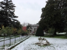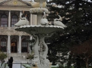 Вхід на територію комплексу проходить через головні ворота. Далі перед самим палацом є невеличкий сад з фонтаном. Було незвично бачити троянди та пальми під снігом, який якраз напередодні випав у Стамбулі.