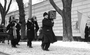 — Мамо, а що тут роблять коняки? А воняють як, — дівчинка років п'яти на вихідних гуляє з мамою у столиці поблизу Софійської площі. Вхід до Софії Київської закрили на чотири дні. Площа з усіх боків оточена залізним парканом, стоїть охорона. Уздовж огорожі прив'язали із десяток коней. Біля них чоловіки у формі червоноармійців курять "Мальборо".
