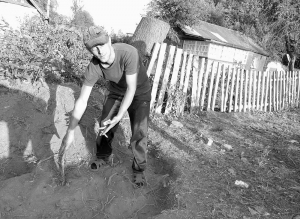 — Як довбали землю, то спочатку наткнулися на відро. В другому місці вдарили ломом у шось твердіше, точно не похоже на відро. Руками рили ту землю і витягли міну, — розповідає Артур Лазаренко, 26 років. — Нікого не звали, стали дальше копати. Хазяї гроші за це платять. Потім викопали другу, третю бомбу. Тоді покликав головиху. То тих емчеесників наїхало тьма.