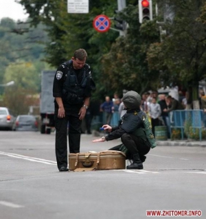 Стару коричневу валізу знайшли 1 вересня близько другої дня біля зупинки маршруток на майдані Соборному в центрі Житомира. Приїхали півсотні міліціонерів, рятувальників, лікарів "швидкої". Рух вулицею перекрили на півгодини, перехожих на площу не впускали. Спецслужби вважали, що у чемодані вибухівка. Поблизу розташований драмтеатр, дім правосуддя, кілька житлових будинків.