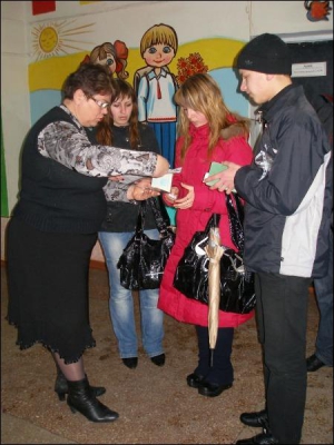 На вході до школи N16 стоять чергові, які перевіряють в учасників тестування паспорт або свідоцтво про народження, довідку зі школи, персональну інформаційну картку та квитанцію про оплату пробного тестування — 50 грн за один предмет.