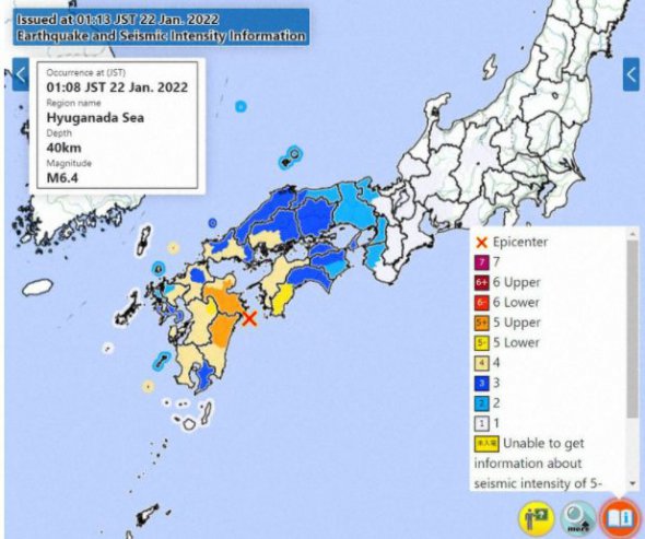 На південному заході Японії 21 січня стався землетрус із попередньою магнітудою 6,4 бали.