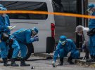 Нападник помер від поранень, завданих самому собі. Поліція припускає, що чоловік 40-50 років на вигляд заколов себе в шию.