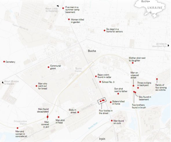 ЧИТАЙТЕ ТАКОЖ: The New York Times створили карту звірств росіян у Бучі 18+