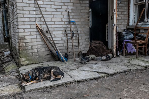 Неподалік лежать тіла чоловіків, а два собаки сім'ї зрешечені кулями.