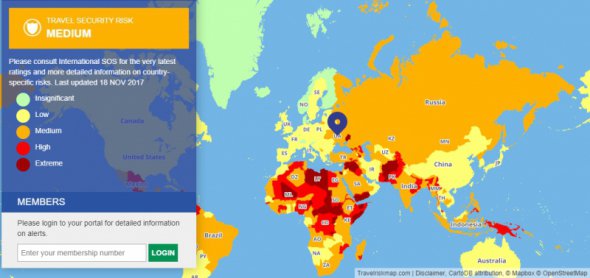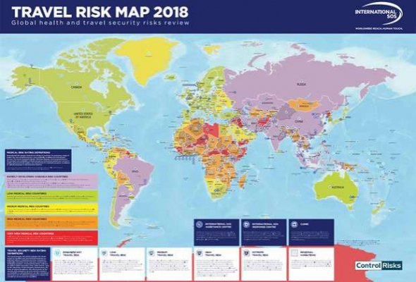 Міжнародна організація International SOS створила карту найнебезпечніших країн для туристів у 2018 році. Вона займається безпекою мандрівників по всьому світу і наданням їм термінової медичної допомоги.