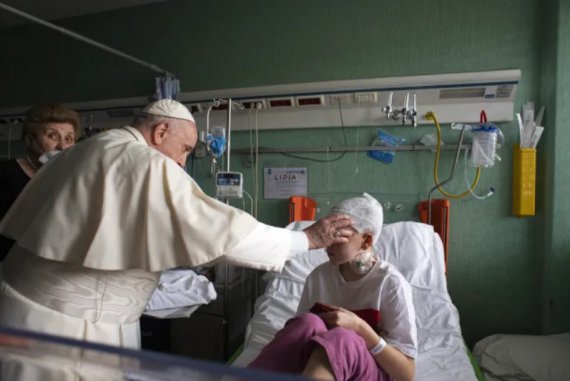 Папа Римський Франциск відвідав українських дітей-біженців у педіатричній лікарні Bambino Gesu в Римі.