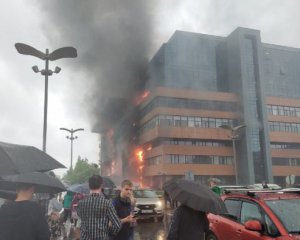 Частина людей, заблокованих у будівлі, вийшла на дах. Двох осіб рятувальникам вдалося евакуювати з восьмого поверху.