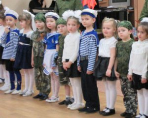 Оприлюднили відео, на якому зображені виступи дітей у декількох російських дитячих садках з нагоди святкування Дня захисника Вітчизни 23 лютого.