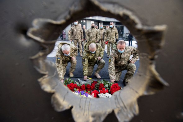 Покладання квітів захисникам України, які загинули в українсько-російській війні, і вшанування пам'яті загиблих у захисті Донецького аеропорту, Київ, 20 січня