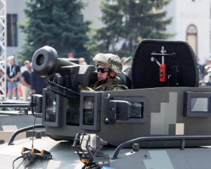 Український військовий тримає протитанкову ракету Javelin під час військового параду до Дня Незалежності в Києві / Getty Images