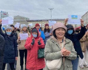 Протестувати вийшли жінки. Вимагали "припинити геноцид" і повернути чоловіків додому з війни проти України, передає місцеве видання Sakhaday.