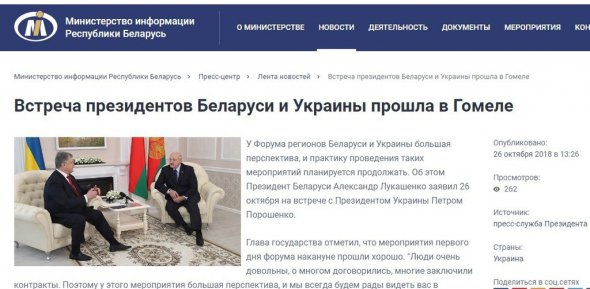 Прес-служба білоруського міністерства інформаційної політики назвала переговори Лукашенка і Порошенка, як "Зустріч президентів Білорусі і Росії пройшла в Гомелі".