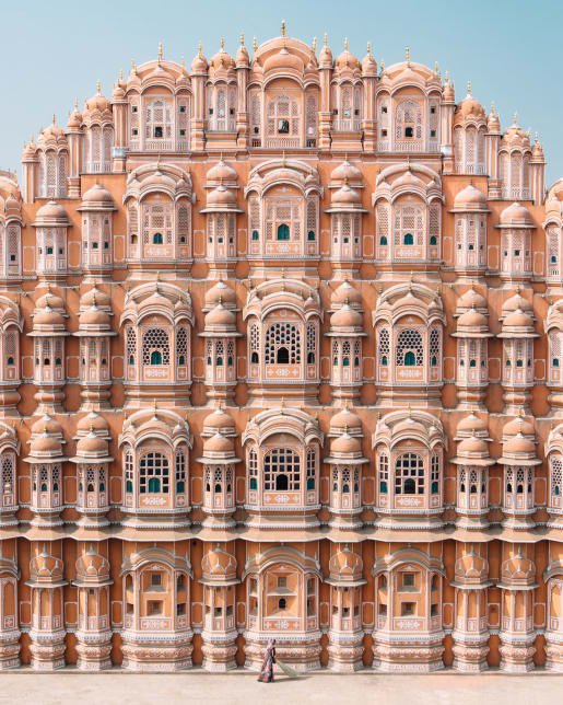 Особливо популярним у мережі став один рожевий палац Хава Махал. Ця будівля є продовженням міського палацу. Через вікна особливої форми придворні жінки могли спостерігати за вулицею, не з'являючись на публіці.