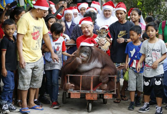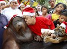 Орангутанг Пак'яо виконував роль Санта Клауса для мешканців філіппінського зоопарку Malabon в Манілі.
