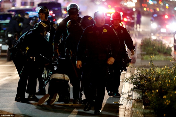 В Оукленді протестувальники розпалили вогонь на вулицях і кидали пляшками в поліцейських. Ті застосували сльозогінний газ.