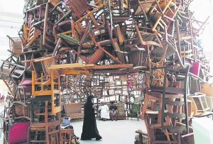 6-метрову скульптуру зі стільців зробив японський художник Тадаші Кавамата під час четвертого щорічного фестивалю сучасного мистецтва в Абу-Дабі, столиці Об'єднаних Арабських Еміратів.