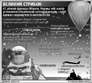 До стрибка з парашутом з висоти 40 км 62-річний француз Мішель Фурньє готується вже четвертий рік. 2002-го та 2003-го зробити це йому завадили погодні умови і проблеми з повітряною кулею, яка мала підняти його у стратосферу.