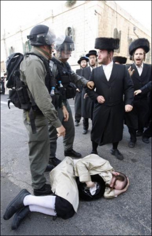 Висловити своє невдоволення прийшли майже півтори тисячі хасидів. Натовп вдалося розігнати за допомогою води. Мітингувальники поранили шістьох правоохоронців.