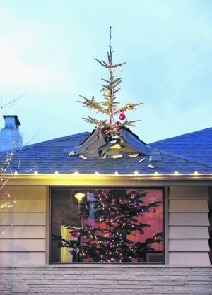 — Дружина змусила мене розрубати ялинку. Верхівку пропонувала віддати літній сусідці. Але я не хотів розлучатися з деревом, за яке віддав 60 доларів. Тому розпиляв ялинку і верхню частину приладнав зверху будинку.