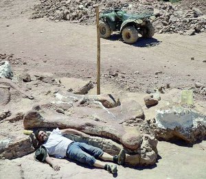 — Це найбільший представник родини титанозаврів, — каже палеонтолог Егідіо Феругліо. — Цей підвид ми назвали на честь території, де його знайшли. Тірекси й решта м'ясоїдних динозаврів біля нього виглядали як гноми. Але страшними ці велети не були. Вони мали рухатися повільно. Ці шестеро загинули під час повені. Їхні кістки добре зберегла глина.